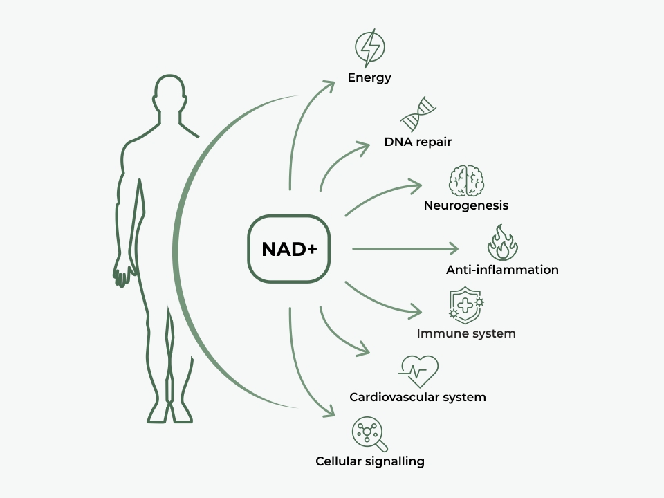 Overall, these molecules are crucial for maintaining energy balance and cell health. The decline in NAD+ levels in the body is linked to the aging process and certain diseases. This is why NAD+ has been the focus of research on aging and cell regeneration.