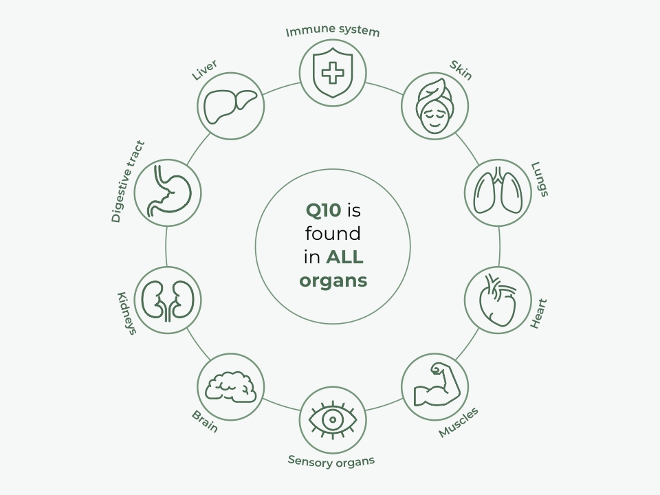 Coenzyme Q10 is responsible for the proper function of every cell. It is involved in the process of cellular respiration and helps the body transform nutrients into energy. With advancing age or with great exertion, it becomes deficient, which often leads to feelings of fatigue and other, often more serious problems.