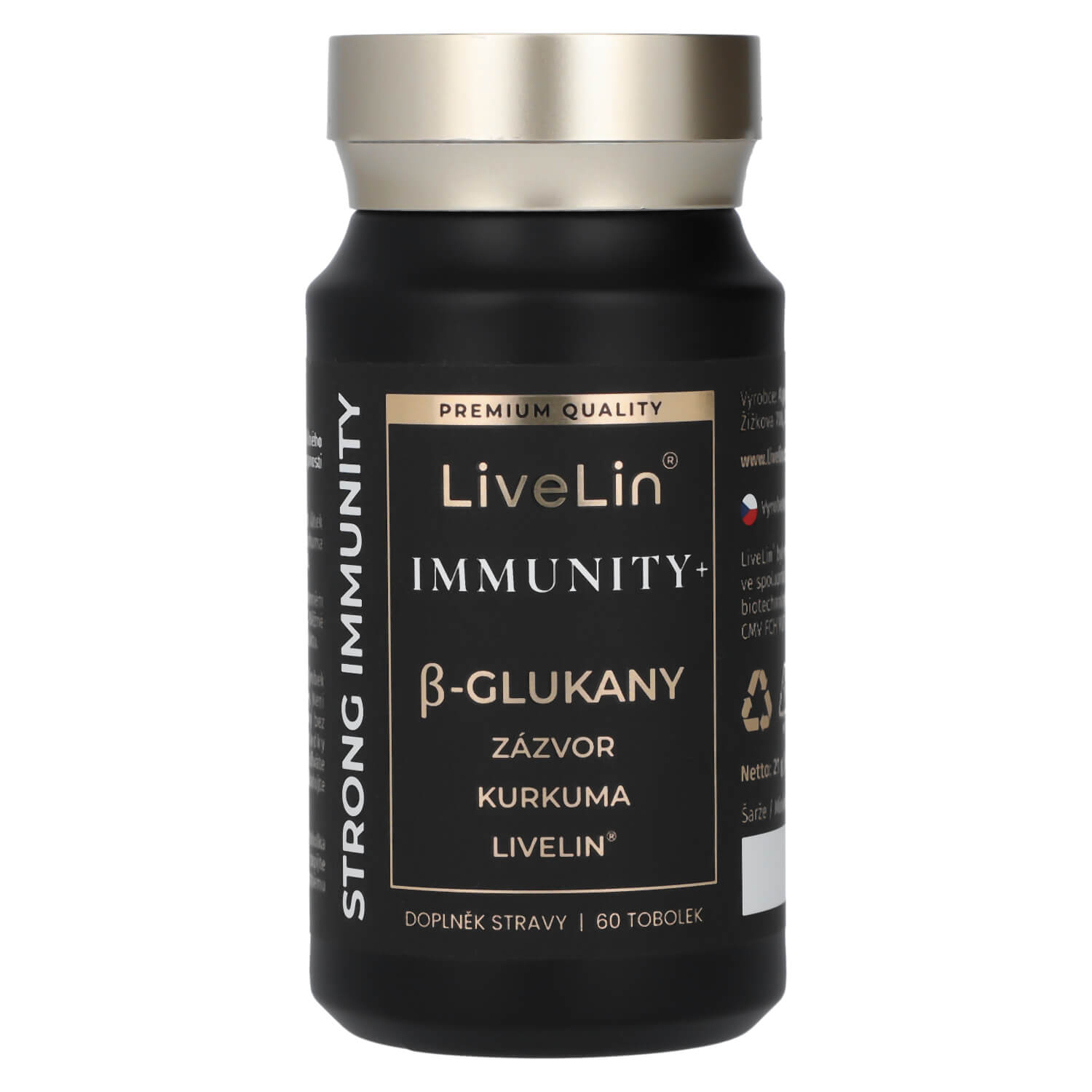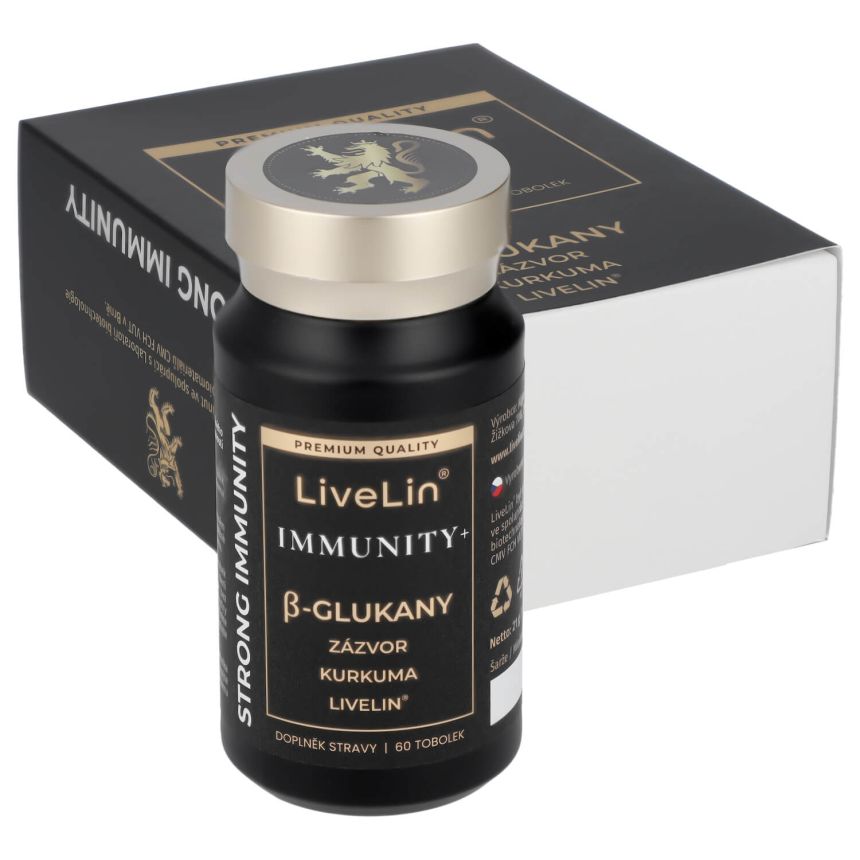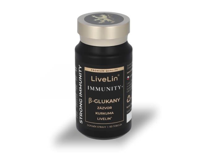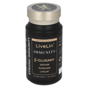 The LiveLin® Immunity+ dietary supplement is a purely natural complex of beta-glucans, turmeric extract, ginger extract, and unique micronized biomass, produced by a biotechnological fermentation process that uses noble microorganisms to produce active substances essential for immunity and lasting health. The product contains no additives, colorants, flavorings, or stabilizers.