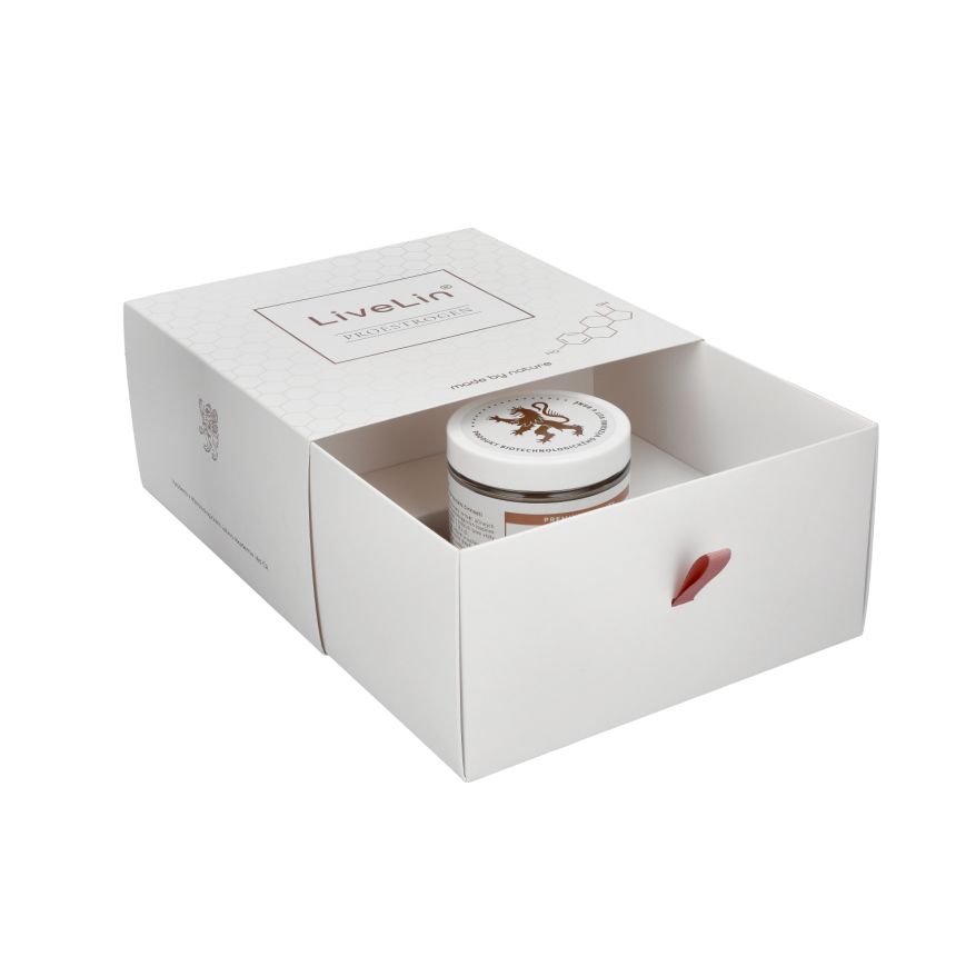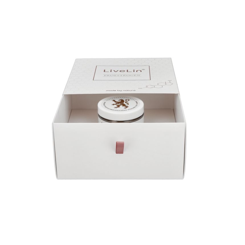 LiveLin® ProEstrogen is an all-natural blend of freeze-dried extract from honey bee larvae (in the late stage of larval development) and micronized biomass, produced by a biotechnological fermentation process that uses noble yeasts to produce active ingredients essential for longevity and lasting health. The mixture is stored in a honey emulsion for perfect protection against biodegradation of the active ingredients. The product contains no additives, colorants, flavorings or stabilizers.