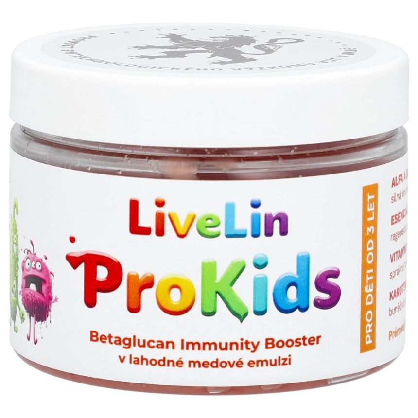 LiveLin® ProKids combines the most powerful natural immunostimulants (beta-glucans) with lycopene and the revolutionary LiveLin® complex of highly effective substances to support the immune system, mental and physical condition, and to supplement the necessary substances for healthy growth and development of children.