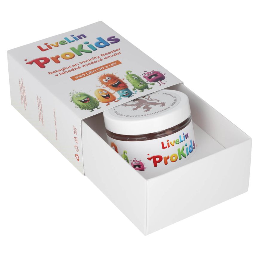 The LiveLin® ProKids 150 g dietary supplement is a purely natural complex of beta-glucans, lycopene, liposomal vitamin C, and unique micronized biomass, produced by a biotechnological fermentation process that uses noble microorganisms to produce active substances essential for immunity and lasting health.